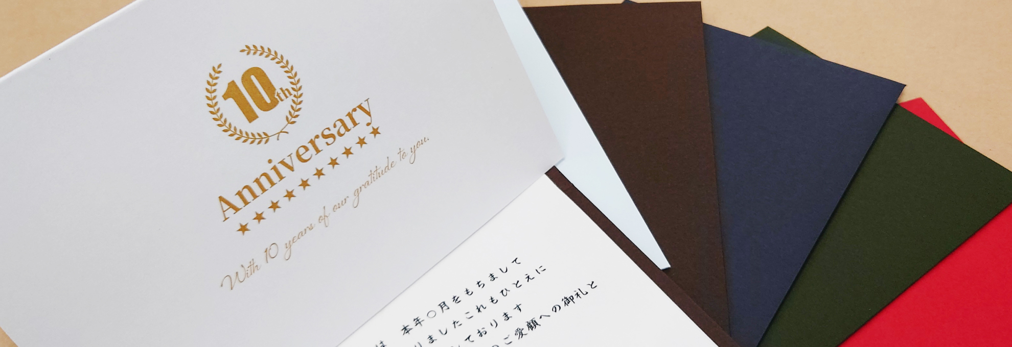 創業記念や周年記念、会員・開講・開店など、事業の節目のご挨拶に最適な周年記念カード・挨拶状の印刷・発送をワンストップで承ります。